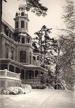 Robert Berdell was a man of many successful business and financial enterprises who in 1864 became president of the Erie Railroad. For his home, he purchased the site of the General George Wickham house, which was built in 1774 on Main Street in Goshen.[1] Berdell's house, very expensive and ornate in mid-Victorian style, was completed in 1867. Berdell's occupation of the house terminated in 1876 following an altercation with two brothers of the Murray family; one was shot and killed by Berdell.[2][3] Berdell then sold his holdings in Goshen, and the house was vacant, except for a caretaker, for eight years.