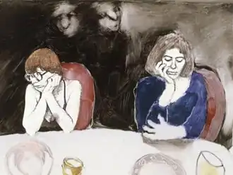 Giannalberto Bendazzi remarks that Interview describes "how work as a filmmaker influences both women's daily lives and, at the same time, how their daily lives shape their works."[4] María Lorenzo Hernández noted in 2010 that this is in sharp contrast to previous autobiographical animated films by men:[note 1] unlike the men, Leaf and Soul "delved in the identity of the animatrice by sharing with the audience their creative process, depicted as a personal, almost intimate experience."[11] In 2015, she remarked further that the "mutual interview as modus operandi reinforces" the documentary perspective. Leaf and Soul "deliver a reflection on animation as a medium, and as a mode of living, appearing as independent women who work autonomously – but not in creative isolation. They establish a dialogue with other artists, other women, legitimating unconventional animation processes. Both have opposite views on animation, yet they can create together."[12]