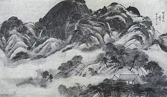 Inwangjesaekdo (Korean: 인왕제색도; Hanja: 仁王霽色圖; "Clearing After Rain in Mt. Inwangsan" or "After Rain at Mt. Inwang") is a landscape painting by the famous Jeong Seon.[1] It was painted during the reign of Joseon Dynasty King Yeongjo in 1751,[1] at his birthplace in Cheongun-dong at Jongno District, modern-day Seoul. It was designated by the South Korean government as the 216th National Treasure of Korea on August 6, 1984. The painting is currently held and managed by the Ho-Am Art Museum in Yongin, Gyeonggi Province. Previously in possession of Lee Kun-hee, it has been donated to the National Museum of Korea following his death in 2020[2]