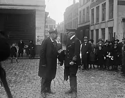 ![]() Captain Ion Hamilton Benn, CB, DSO, RNVR (right), talking to the Burgomaster of Ostend, October 1918 | |