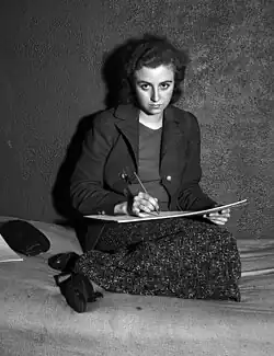 Again in France, Robinson decided to visit Barcelona and witness the situation of the Spanish Republic. Passing through London, she had the opportunity to talk to Winston Churchill who recommended to her that instead of being bombed in Barcelona she should wait in London and be bombed there. She should "take the first boat home and urge the people of my country not to be spectators of events that were happening in Europe".[5] Nevertheless Robinson traveled to Barcelona where she could visit "refugios" (children's homes) and keep records of their inhabitants. By intermediation of Luis Quintanilla she met members of the government and commanders of the Republican Army, including general Bibiano Fernández Osorio y Tafall who became a close friend of Robinson and led her to the Ebro front where normally no "tourists" were allowed. In Spain she met David Alfaro Siqueiros who, like Antonio Pujol, was a stalwart communist, had joined the Republican Army and had been appointed a colonel, considering his experience as a soldier in the Mexican Revolution in the 1910s. Siqueiros, whom she first met in Mexico in 1929, had been a regular passerby of hers in New York in 1936.