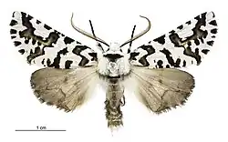 Ipana atronivea, commonly called the North Island lichen moth or North Island zebra moth, is a moth of the family Geometridae.[3] It is endemic to New Zealand and found only in the North Island.