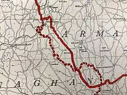 The Nationalist claims to the whole of County Tyrone have been covered above. With regard to the specific areas adjoining County Monaghan, Nationalist inhabitants of the area pressed for the inclusion of Aughnacloy and Clogher Rural District within the Free State.[53] In regard to northern County Monaghan, the commission heard claims from Clogher Rural District Council, who pressed for small rectifications of the boundary south of Aughnacloy in Northern Ireland's favour, as well as Nationalist and Unionist inhabitants of Glaslough, who argued alternately for its inclusion or exclusion in the Free State.[54]