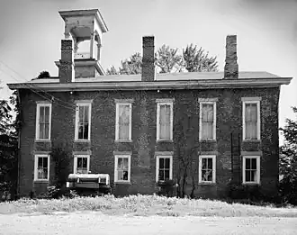 The first floor of what was supposed to be the east wing of building was completed as a one-story classroom building in 1858 in time for the school year that fall.[5] The second floor was not finished until 1860.[4][2] The rest of building was never completed as a due to lack of funds. The total cost ended up being almost double the original plan at $10,000. The Overspending on the hall put the college in debt and while it was the first financial burden on the college it certainly wouldn't be the last.[4]