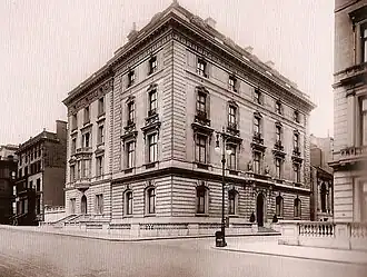 The home was designed by the firm of Schickel & Ditmars, and it was constructed for the entrepreneur Isaac Stern (d. 1910). He was one of the founders of the Stern Brothers department store and was the father of Robert B. Stearns, who became a prominent financier and co-founded Bear Stearns in 1923. The mansion was later owned by businessman Thomas Fortune Ryan.[1] The house was demolished in 1949 to make way for an apartment building.