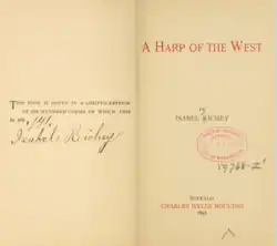 The first sign of her poetical ability exhibited itself in fugitive verse,[2] but she only wrote when in the mood to do so, and only a small portion of her work was offered for publication. Her first work was published in Omaha, Nebraska papers,[6] writing for the press starting in 1892. From 1893, Richey published two volumes of verse.[7] In 1895, she published through the press of Charles Wells Moulton, of Buffalo, New York, A Harp of the West, which volume of poems received flattering notices at the hands of William Dean Howells, Joaquin Miller, Prof. Herbert Bates, "Ironquill" (Eugene Fitch Ware), James Whitcomb Riley, and other authors and critics of the day.[5] She provided the lyrics for 'The Wood Nymph's Song', set to music by W. W. Abbott and published in 1896.[8]