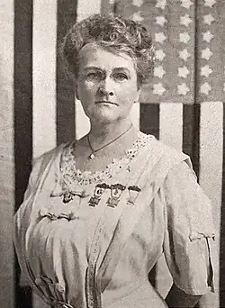 During this period of her life, Ball became heavily involved with the Woman's Relief Corps (WRC), an auxiliary of the veteran's fraternal organization known as the Grand Army of the Republic (GAR). She was a vice-president of the WRC and a member of its executive board as well as president of its department of the Potomac.[1] She was associate editor of the National Tribune, the GAR's weekly publication,[2] for which she wrote Susan B. Anthony's obituary in 1906.[1] She also wrote for the Daughters of the American Revolution Magazine.[4]