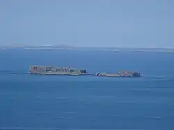 An unusual feature of the Cairnburgh Castle its that its defences straddle both the island of Cairn na Burgh Mòr itself and its smaller companion isle. Cairn na Burgh Mòr contains a barrack block, chapel, courtyard and guard-house and Cairn na Burgh Beag has another guard-house and a well.[6][7] Given that "small Floda and Lunga" mentioned in 1495 are also in the Treshnish Isles, Duncan and Brown concluded that Iselborg "certainly lay, with Cairnburgmore, in the Treshnish Group".[8] In 1980 the RCAHMS also believed that "there appear to be good grounds for accepting the view that Isleborgh is an early name" for Cairn na Burgh Beag.[1]
