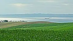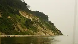 The coastline of Isgård to the south and the east consists of steep, often eroding, slopes down to the sea with a walkable beach, where the tidal difference is normally less than one foot.[6] The hilly moraine deposits in the area are dominated by different types of clay with spots of sandy material in between.[3]