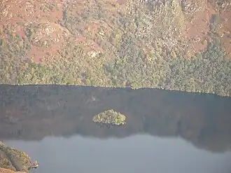 Island I Vow is a wooded islet near the head of Loch Lomond in west-central Scotland. It is 10 m tall at its highest point, and 80 m long. The island contains the remains of a castle built by the chief of Clan MacFarlane in 1577. This became the chief's primary residence after the destruction of Inveruglas Castle further down the loch, but it fell into ruin after the chief moved to the mainland.[1]