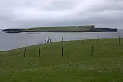 It sheltered the old fishing harbour at Esha Ness on the mainland. The Skerry of Eshaness and Dore Holm are not far away.
