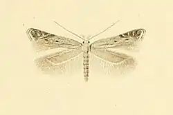 The wingspan is about 10 mm. The fore- and hindwings are grey.[3]