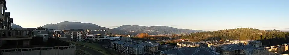 Panorama of Issaquah Highlands, Issaquah Alps in the distance