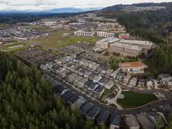A new plan was formed in 1992 by Port Blakely Communities, a new division of Port Blakely for real estate development, centered around sustainability and affordability following New Urbanism principles.[10] The King County Council failed to approve the rezoning of Grand Ridge to support housing and commercial development, also rejecting a compromise from County Executive Tim Hill that would allow immediate development on the western edge.[11] An urban growth boundary, required by the Growth Management Act of 1990, was set in 1992 to exclude the Grand Ridge area, preventing further development without county action.[12] Behring pulled out of the partnership in 1993, leaving Port Blakely as the sole developer for Grand Ridge.[13]