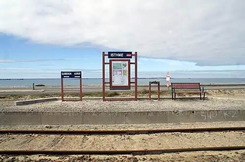 Isthme halt (French: Halte de L'Isthme) is a railway halt in Saint-Pierre-Quiberon, Morbihan department of Brittany, France.[1] The halt is situated within close proximity of the Fort of Penthièvre. It is located at kilometric point (KP) 605.000 on the Auray–Quiberon railway. The halt is served seasonally during summer months only by TER Bretagne services operated by the SNCF, between Auray and Quiberon.[2]