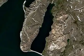 Istikhed is a coastal lagoon of the Chukotka Peninsula, at the southeastern end of the Chukotka Mountains. It located by the eastern side of Providenya Bay and stretches roughly from NNE to SSW for almost 10 km (6.2 mi). The northern section is narrow and the lake broadens towards its southern end, which is separated from Anadyr Bay to the south by a narrow pebbly landspit. The water is clear and the lake bottom is pebbly.[4]