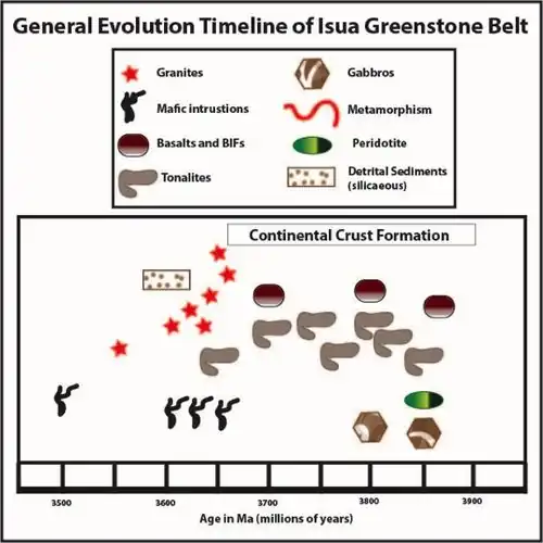 - ^ a b Furnes, Harald; Rosing, Minik; Dilek, Yildirim; de Wit, Maarten (November 2009). "Isua supracrustal belt (Greenland)—A vestige of a 3.8 Ga suprasubduction zone ophiolite, and the implications for Archean geology". Lithos. 113 (1–2): 115–132. Bibcode:2009Litho.113..115F. doi:10.1016/j.lithos.2009.03.043.