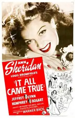 It All Came True is a 1940 American musical comedy crime film[1][2] starring Ann Sheridan as a fledgling singer and Humphrey Bogart, who was third-billed on movie posters, as a gangster who hides from the police in a boarding house. It is based on the Louis Bromfield novel Better Than Life. Sheridan introduced the hit song "Angel in Disguise". The picture was produced by Mark Hellinger and directed by Lewis Seiler. The cast also featured Jeffrey Lynn as the leading man, Zasu Pitts, and Una O'Connor.