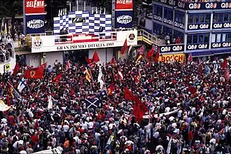 The Italian Grand Prix (Italian: Gran Premio d'Italia) is the fifth oldest national motor racing Grand Prix (after the French Grand Prix, the United States Grand Prix, the Spanish Grand Prix and the Russian Grand Prix), having been held since 1921. Since 2013, the Grand Prix has been held the most times, with 94 editions as of 2024. It is one of the two Grands Prix (along with the British) which has run every season as an event of the Formula One World Championship Grands Prix, continuously since the championship was introduced in 1950. Every Formula One Italian Grand Prix in the World Championship era has been held at Monza except in 1980, when it was held at Imola.