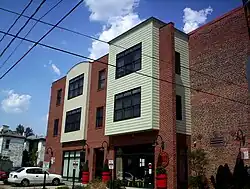Some commercial buildings reflect Italianate or even Victorian styles in their architecture, but many were renovated after High Street was widened in 1920.[2] Buildings tend to be two to four stories high with a storefront at the base, an upper façade, and a building cornice or parapet at the top.[2] Masonry construction with details of wood, brick, stone, or metal characterize these commercial buildings. Storefronts are almost always articulated into bays with large expanses of glass while upper floors resemble residential buildings with regularly spaced windows.[2] Most industrial buildings are also two to four stories high and of the same masonry construction with many windows, some wood and some metal.[2] Several industrial structures have brackets or decorative brickwork, reflections of Italianate cornice detail.[2]