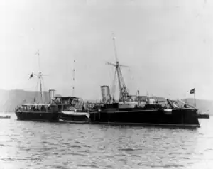 Iride was laid down at the Regio Cantiere di Castellammare di Stabia (Royal Dockyard in Castellammare di Stabia) on 21 February 1889, and was launched on 20 July 1890. After fitting-out work was completed, the ship was commissioned into the fleet on 1 November 1892.[3] Iride took part in the annual fleet exercises in 1893 in the "attacking squadron", which also included six ironclads, her sister ship Euridice and the torpedo cruisers Goito and Monzambano.[4] Beginning on 14 October 1894, the Italian fleet, including Iride, assembled in Genoa for a naval review held in honor of King Umberto I at the commissioning of the new ironclad Re Umberto. The festivities lasted three days.[5]