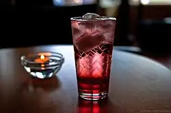An Italian soda is a soft drink made from carbonated water and flavored syrup.[1] Flavors can be fruit (e.g. cherry, blueberry) or modeled after the flavors of desserts, spices, or other beverages (e.g. amaretto, chai, chocolate).[2] Some vendors add cream to the drink as well, which is often then known as a French soda[3] or an Italian cream soda.