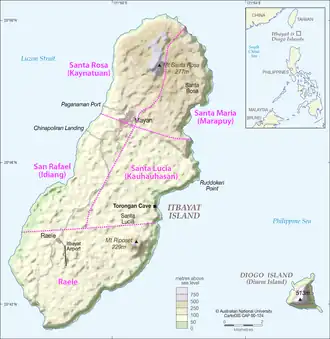 Itbayat is politically subdivided into five barangays.[18] Each barangay consists of puroks and some have sitios.