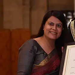 ![]() receiving the 2018 Nari Shakti Puraskar | |