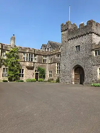 The original medieval manor was a fortified outstation for Chepstow Castle.[1] The gate house, of a 14th-century date is all that remains of the earlier building. In 1749, the court and estate were purchased by the Curre family.[2] The Curres pulled down the remainder of the house, with the exception of a recently constructed wing in the William and Mary style, and built an almost entirely new house in the current Queen Anne style. In the late 19th and early 20th centuries, Sir Guy Dawber, an architect noted for his Arts and Crafts work in the Cotswolds was employed to undertake significant renovations and rebuilding.[1] His work included a "very grand" billiard room and a long gallery.[1] The house remained the home of the Curres until the death of the last Lady Curre in 1956.[1] It was then sold and was subsequently divided into apartments.[1]