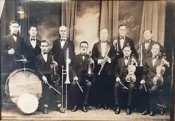 In Philadelphia, where he settled by 1919, he became known as a klezmer clarinetist. It was in 1929 that he finally entered the studio with his own orchestra at Victor Records in Camden, New Jersey and recorded roughly six sides which were sold as the Broder Kapelle.[6][7] These recordings included klezmer bulgars as well as polkas. In the 1930s he remained a popular player in the city's Jewish music circuit.[8] He had a reputation as a "wild character".[9][10] He also gained work due to his birthplace; the Teplyk Landsmanshaft regularly hired him and Cornet player Nachman Grossman.[11]