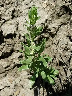 Iva axillaris, called povertyweed[2] or death weed,[3] is a North American species of flowering plants in the family Asteraceae. It grows in the western and central United States and in western Canada, from British Columbia south to California and east as far as the western Great Plains in the Texas Panhandle, Nebraska, the Dakotas, and Manitoba.[2][4] It has also become established in Australia, where it is considered a weed.[3]