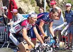 Ivan Basso (born 26 November 1977) is an Italian former professional road bicycle racer, who rode professionally between 1999 and 2015 for seven different teams. Basso, nicknamed Ivan the Terrible,[3] was considered among the best mountain riders in the professional field in the early 21st century, and was considered one of the strongest stage race riders. He is a double winner of the Giro d'Italia, having won the race in 2006 for Team CSC and 2010 for Liquigas–Doimo.