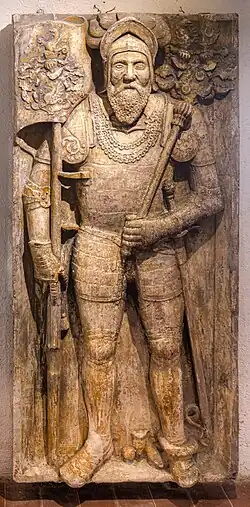 During the Ottoman wars in Europe, Klis Fortress was on 7 April 1569, liberated by Split noblemen Ivan Alberti and Nikola Cindro.[2] Bey Mustafa responded by bringing under Klis Fortress more than 10,000 soldiers.[2] General Ivan Lenković with 1,000 Uskoks came in relief, to some 1500 Klis defenders.[2] During the battle, Lenković withdrew, after he himself was wounded, and the fortress was delivered to the Turks, on 31 May.[2] However, this temporary relief resounded in Europe and among the local population.[2] He died in Metlika on 22 June 1569 and is buried in Novo Mesto Franciscan Church.