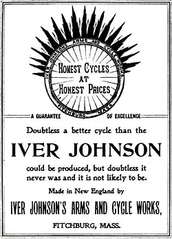 Iver Johnson had a very productive bicycle manufacturing and sales business line during the bicycle boom of the late 19th and early 20th centuries. Iver Johnsons are considered to be "classics" by vintage bicycle collectors, and are considered especially pleasing from an aesthetic point of view. O.F. Mossberg worked in the bicycle plant and then started his own firearms factory.[11]