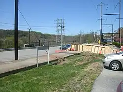 SEPTA suspended service beyond Cynwyd in March 1986 because of deteriorating track conditions and concerns about the Manayunk Bridge; a shuttle bus ran from Manayunk on the Manayunk/Norristown Line.[8][9] In August SEPTA constructed the current platforms along the ex-Reading Norristown line down the bluff from the ex-Pennsylvania line.[10] For a while, the park-and-ride lot sat unused until SEPTA erected a 39-step stairway connecting the derelict PRR upper level and RDG lower level station sites. In the beginning, the steep staircase discouraged ridership, but this changed as ridership grew in the 1990s.[7]