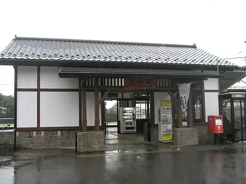 The current station structure was built in 1936 as a half-timbered building with a characteristic foundation made of regional "Iwafune stone". Originally it had a station master as depicted in the anime film listed below, and a lockable waiting room. As part of a renovation and simultaneous modernization, the part of the station master's accommodation was demolished by JR East in 2006 and the rest of the building was converted into an open waiting hall. The station has been in unstaffed operation since then.[1]
