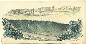 The disappearance of the monuments convinced many scholars that the Järsberg runestone had been erected on a tumulus and several interpretations of the inscription have made this assumption.[4] In order to arrive at a definitive conclusion, the Swedish National Heritage Board made an excavation in 1975, but no traces of any graves could be found.[4] Furthermore, no archaeological finds were made. The excavation concluded that the mound was a natural feature.[4]