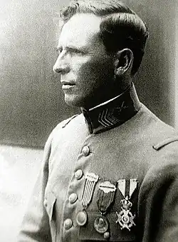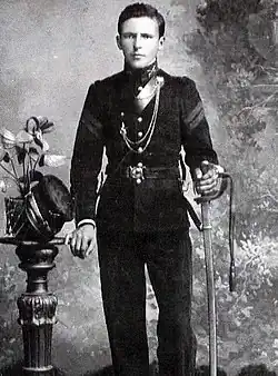 On 4 December 1913, aiming for officership, he joined the newly opened School of Officials of the Public Force, graduating in February 1915. That same year, he finally joined the officership of the corporation, as an ensign. In 1916, he was promoted to 2nd lieutenant quartermaster. In 1918 he was promoted to 1st lieutenant, for studies. In 1922, he was awarded the “Knight's Cross of the Order of Leopold II” granted by His Majesty King Albert of Belgium, when visiting the city of São Paulo. The honour was also attributed on that occasion to the then captain of the Cavalry of the Public Force, Azarias Silva, another distinguished officer of cavalry of the corporation.[1][4][5]