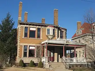 J. C. Johnson House was a historic home located at Muncie, Delaware County, Indiana. It was designed by the noted Fort Wayne architectural firm Grindle & Weatherhogg and built in 1897. It is a large 2+1⁄2-story brick dwelling with Queen Anne and Romanesque Revival style design elements. It features a projecting tower, two-story bay constructed of limestone, four slender chimneys, and a slate roof with decorative ridge trim.[2]