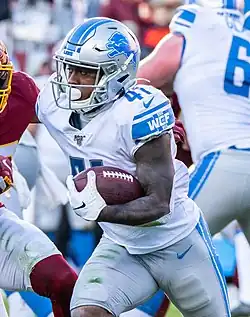 On September 13, McKissic was claimed off waivers by the Detroit Lions.[32] In the 2019 season, McKissic appeared in all 16 games, of which he started three, and recorded 38 carries for 205 rushing yards to go along with 34 receptions for 233 receiving yards and one receiving touchdown.[33]