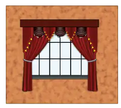 A jabot /ʒæˈboʊ/ ⓘ, also called cascade or tail, is a vertically pleated piece of window treatment used with festoons or swags along the top of a window on the inside of a building. The usual purpose of a jabot is to hide the seams between individual swags, though for treatments with only one swag, their purpose is simply decorative (unlike most curtains, jabots do not serve to block the passage of light). [1][2] Visually, they represent a continuation of the swag over the ends of a pole, and are always made of the same decorator fabric on the facing side as the swag itself. Jabots are often lined, however, with a different style or color of fabric, which is then revealed along the bottom edge with each pleat.