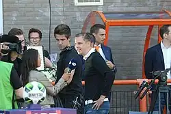 ![]() Tuijp talking to Volendam fans in 2017 | |||