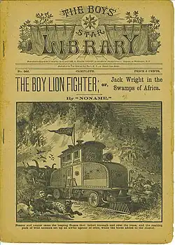 ![]() The Boys' Star Library No. 366, 1895 featuring "The Boy Lion Fighter; or, Jack Wright in the Swamps of Africa" | |