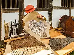 A jack of plate is a type of armour made up of small iron plates sewn between layers of felt and canvas. They were commonly referred to simply as a "jack" (although this could also refer to any outer garment). This type of armour was used by common Medieval European soldiers as well as by the rebel peasants known as Jacquerie.[1] The present day equivalent is perhaps a bullet-proof vest.[2]