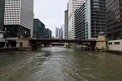 The Jackson Boulevard Bridge is a Pratt deck truss, fixed-trunnion, bascule bridge that spans the Chicago River at Jackson Boulevard in downtown Chicago.[4][5] It was built in 1915 and is 273 feet in length.[4]