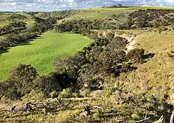 The biik wurrdha Jacksons Creek valley and its underlying geology frame the parklands and includes Jacksons Hill and Redstone Hill volcanic cones, rapids, steep escarpments and rocky outcrops formed by lava flows.[2][19][20]