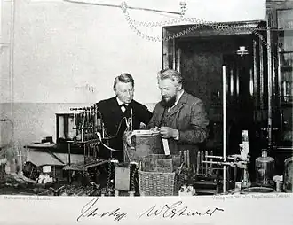 Jacobus Henricus van 't Hoff Jr. (Dutch: [vɑn (ə)t ˈɦɔf]; 30 August 1852 – 1 March 1911) was a Dutch physical chemist. A highly influential theoretical chemist of his time, Van 't Hoff was the first winner of the Nobel Prize in Chemistry.[3][4][5] His pioneering work helped found the modern theory of chemical affinity, chemical equilibrium, chemical kinetics, and chemical thermodynamics. In his 1874 pamphlet, Van 't Hoff formulated the theory of the tetrahedral carbon atom and laid the foundations of stereochemistry. In 1875, he predicted the correct structures of allenes and cumulenes as well as their axial chirality.[6] He is also widely considered one of the founders of physical chemistry as the discipline is known today.[7][8][9]