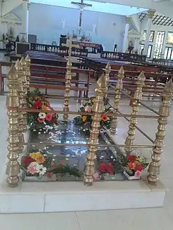 His tomb was opened in 1852, by Fr. Florentine Gracia. Some of his bones were found there and a bone was kept in the altar of the new church. And then the tomb was sealed. When it was opened again, his cross and a tooth were taken out. The tooth has been kept in the church of Our Lady of Sorrows, Nainamadama. It is owned by Muthunamagonnage Niroshan Pranadu for generations.[8]