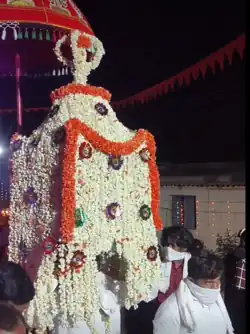 A quarterly fair[5] honoring the deity Sri Karagaparameshwari is held in the village, typically in April or May once every nine or twelve years. The fair is said to have begun in 1950 as a result of plague and cholera diseases that were prevalent in the villages at the time. The fair was inaugurated by walking around the village for nine days without shoes or vehicles. Accordingly, the fair that began on that day was held in this manner once every 9 years and even today, people still observe the same customs. When the last fair took place in April 2023, the villagers observed a rigorous fast during which they did not wear sandals for nine days in the sweltering sun.[6] In addition, the villagers prohibited outsiders from visiting the village during the nine days of the fair held there. Once in 9 or 12 years, abhisheka and flowers, specifically Jasmine, are offered to the goddess Karagaparameshwari. Once Abhishekam and Jasmine's decoration is done, a procession throughout Jadigenahalli and the goddess karagaparameshwari reaches Kalabhairaveshwara temple. Poojas are performed to her in the temple after taking her back to the temple. This same process continues for one whole month, that is, from one new moon day to another new moon day. A total of 12 villages take part in this procession. On the last day, the villagers take her to the hill known as Saptamatrika Betta. Here Saptamatrika and Lord Jade Munshwara’s temple is located. After witnessing the pooja on the hill, she finally returns to her temple, the locals slaughter a large number of sheep in front of the temple.