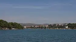 The community of Jadrtovac, with a surface of 24.5 km², is situated eight kilometres south-east of the city Šibenik at the eastern bank of the Morinje Bay. The settlement, which was called Zamurva, developed from a local fortification in possession of the noblemen Andreis.[3] According to a German traveler, the fortification already existed in 1494.[4] After the Morean War at the end of the 17th century, the fortification lost its military significance and was eventually superseded by village buildings. At the beginning of the 1960s and 1990s Jadrtovac had more than 400 inhabitants. The number declined to 171 in 2011.[5]